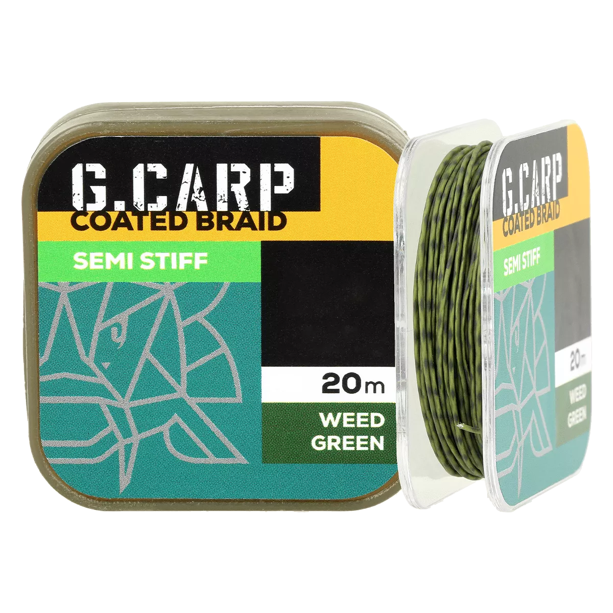 Характеристики Повідковий матеріал в обплетенні GC G.Carp Coated Braid Semi Stiff 20м 15lb Weed Green