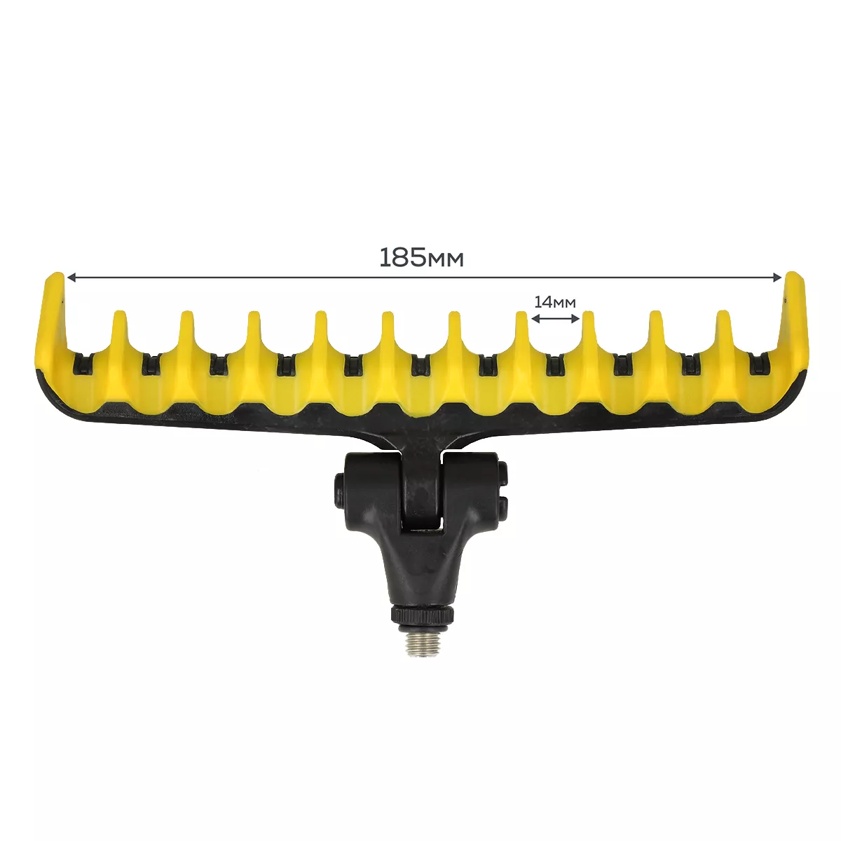 Гребінка на 11 секцій призначена для надійної фіксації фідерних і матчевих вудлищ під час риболовлі. Вона виконана з пластику та має гумове покриття, яке захищає бланк від подряпин і запобігає ковзанню при клюванні. Завдяки бічним обмежувачам вудлище не з’їжджає навіть під поривами вітру чи різкими ривками риби, форма прорізів мінімізує ризик пошкодження волосіні в процесі ловлі. Модель оснащена стандартною різьбою, тому легко встановлюється на триногу, підставку або фідер-арм.