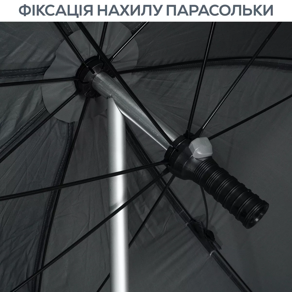 Парасолька регулюється по висоті, тому ви можете легко налаштувати її під власні потреби. Вся парасолька міцна і стійка завдяки ребрам жорсткості. Матеріал водонепроникний, а стики додатково захищені проклеєними швами.