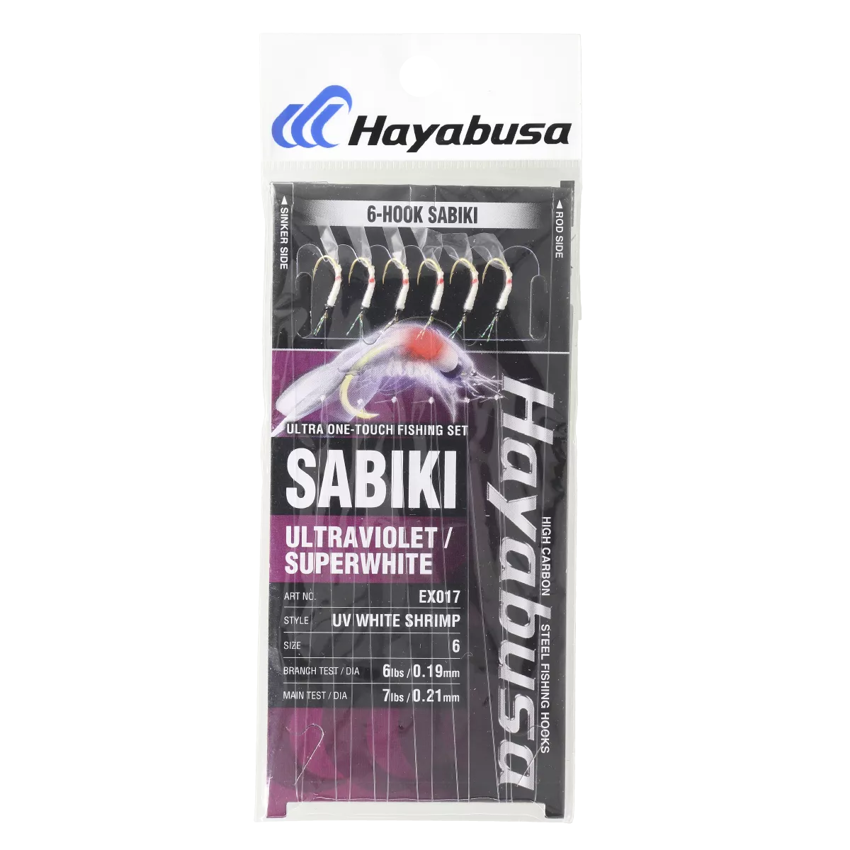 Самодур Хаябуса EX017 складається з основної волосіні та шести якісних імітацій морських безхребетних креветок на гачках, які розташовані на невеликому повідку.