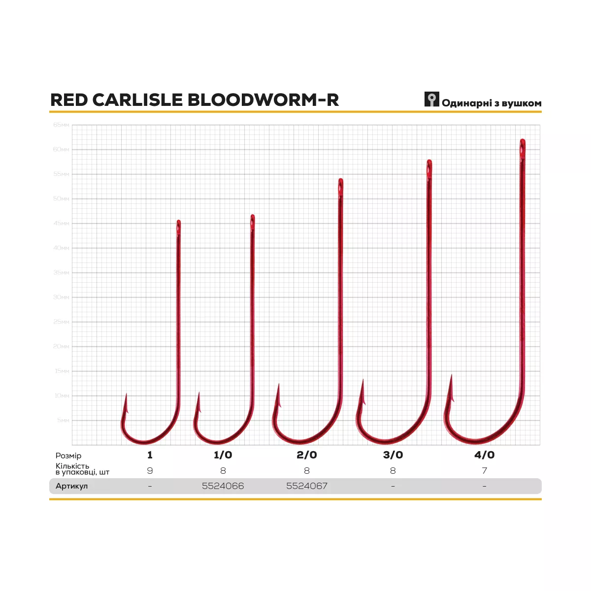 Характеристики Гачок BKK Red Carlisle Bloodworm-R