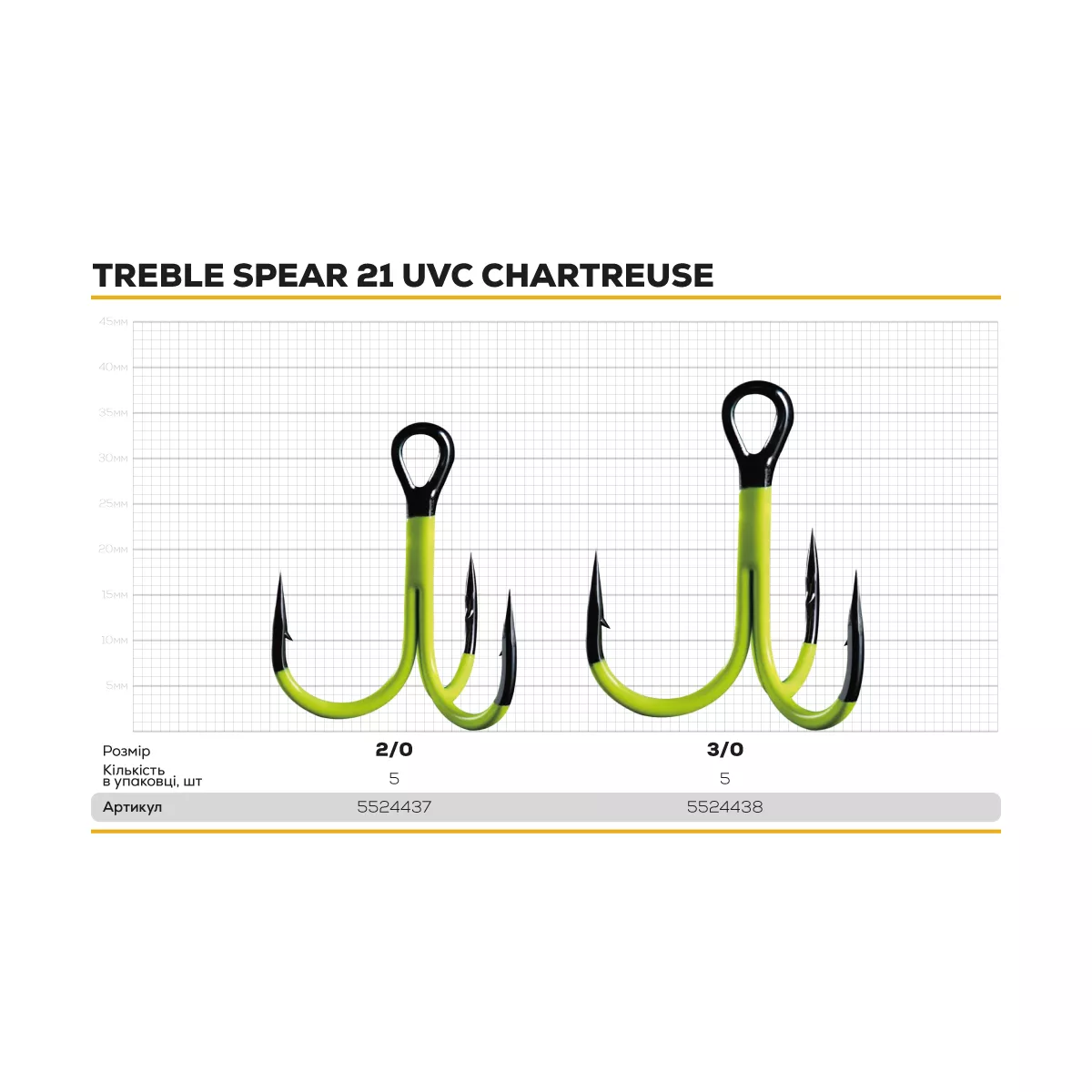 Характеристики Гачок потрійний BKK Treble Spear-21 UVC Chartreuse