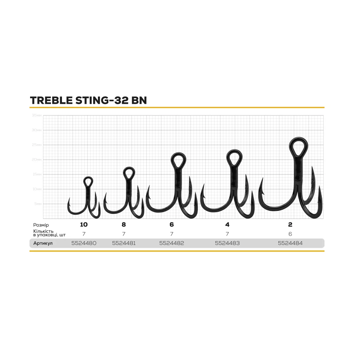 Характеристики Гачок потрійний BKK Treble Sting-32 BN