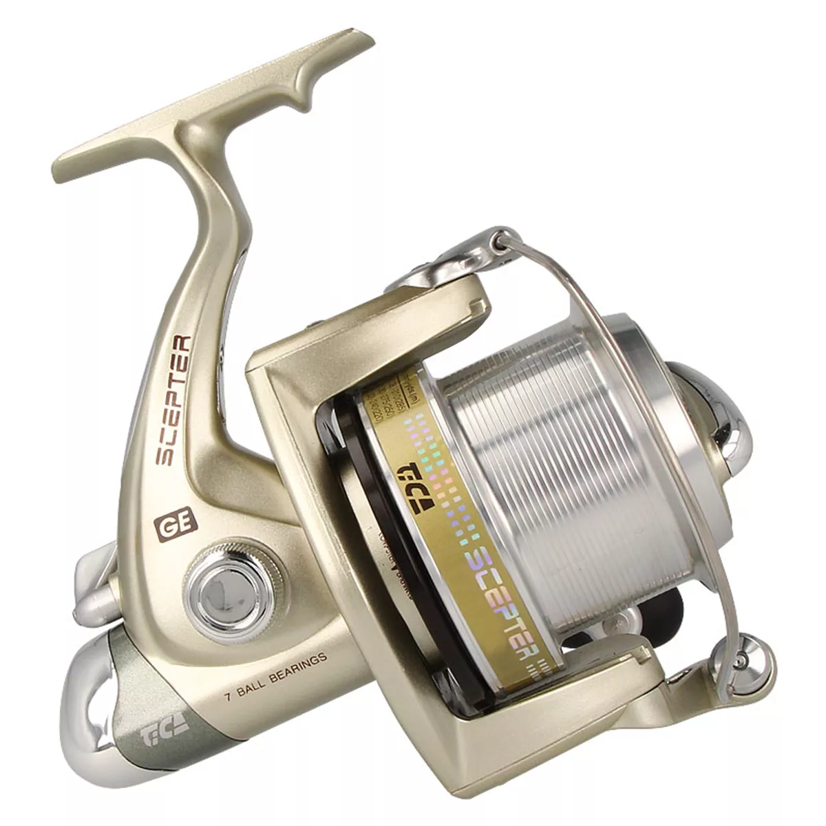 Потужна і надійна котушка, що використовується риболовами для самих різних видів ловлі. Маючи значну вагу і розмір корпусу Scepter відмінно підходить для лову трофейного коропа, серфового лову і в інших випадках, коли потрібні далекі закиди, потужність і упевненість в снасті! 7 шарикопідшипників рівномірно розподіляють навантаження на механізм. Завдяки нескінченому гвинту укладання і схід волосіні з шпулі ідеальні. Переднє гальмо має тонке регулювання, а миттєве гальмо зворотного ходу забезпечує комфортний стоп-старт. Вага котушки 620 грам незалежно від розміру. Відмінності GE5000 і GE6000 лише у розмірі шпулі!
