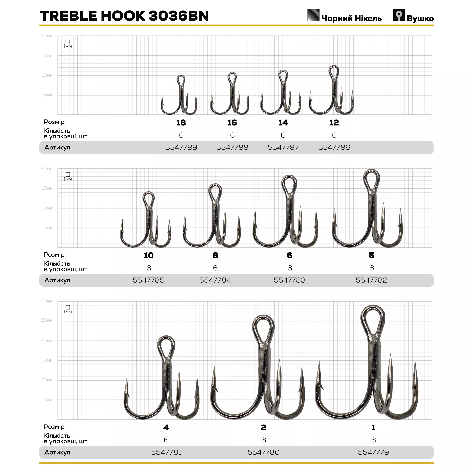 Характеристики Гачок потрійний GC Treble Hook 3036BN