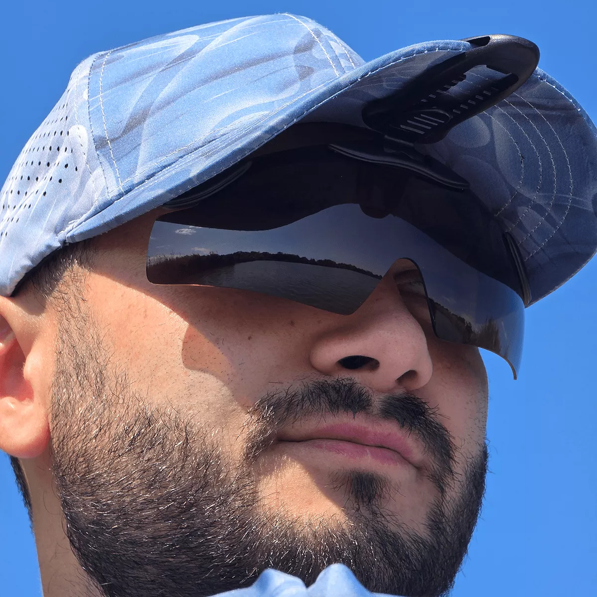 Окуляри MBC401BR Cap Clip-on – так звана безоправна модель, яка кріпиться кліпсою до козирка головного убору, тим самим повністю виключається контакт з обличчям. Ця особливість, окрім максимального комфорту, дозволяє використовувати поляризаційні окуляри спільно з офтальмологічними, не знімаючи їх.