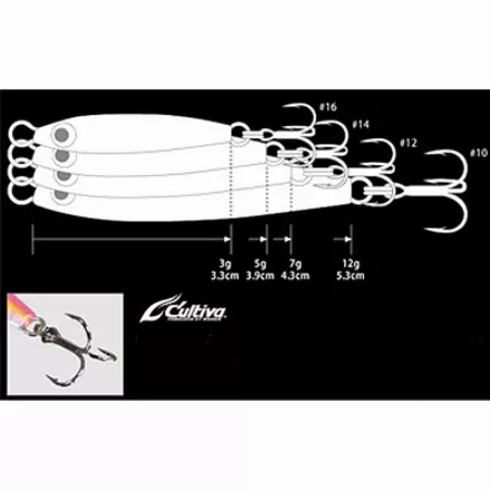 Принада виконана у вагах від 5 до 15 грам, що також дає великі можливості при лові.