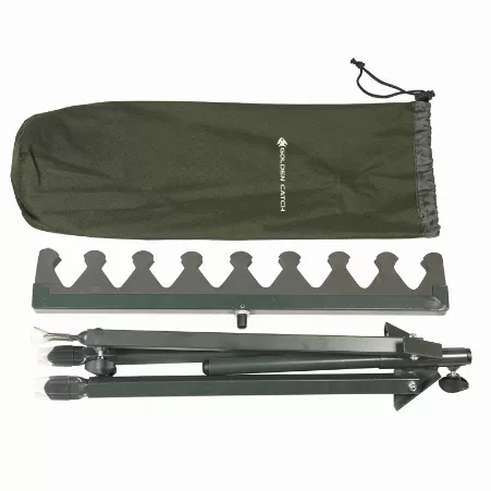 Гребінка, що йде в комплекті дозволяє фіксувати кілька фідерних вудилищ одночасно зменшуючи тим самим кількість обладнання і полегшуючи багаж.Завдяки втулці з універсальним різьбленням на даному триподі можна закріпити не тільки комплектний гребінець але й будь-який інший тримач для вудилища. У комплекті йде спеціальний чохол для транспортування трипода.