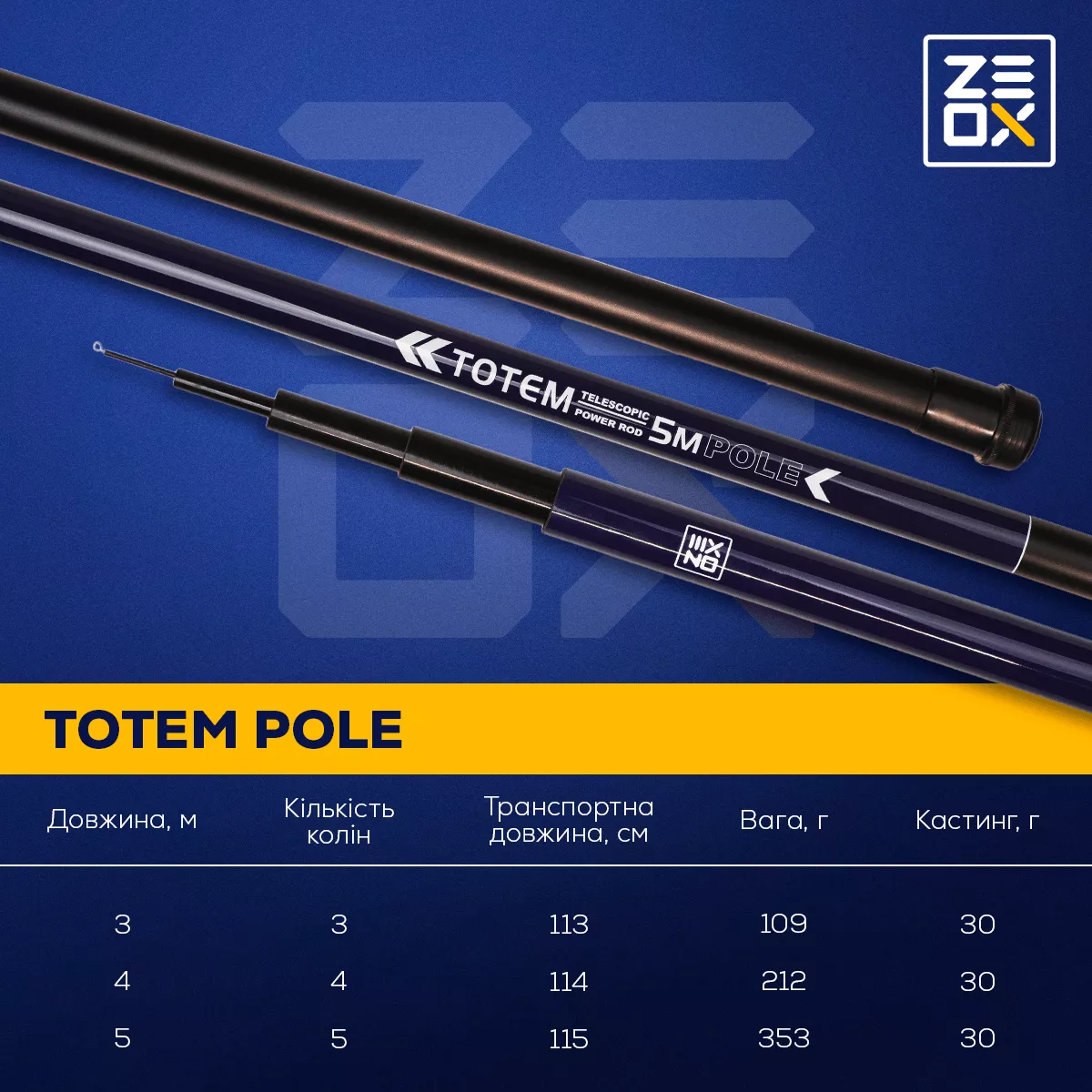 Питання-відповідь Вудилище поплавцеве махове ZEOX Totem Pole