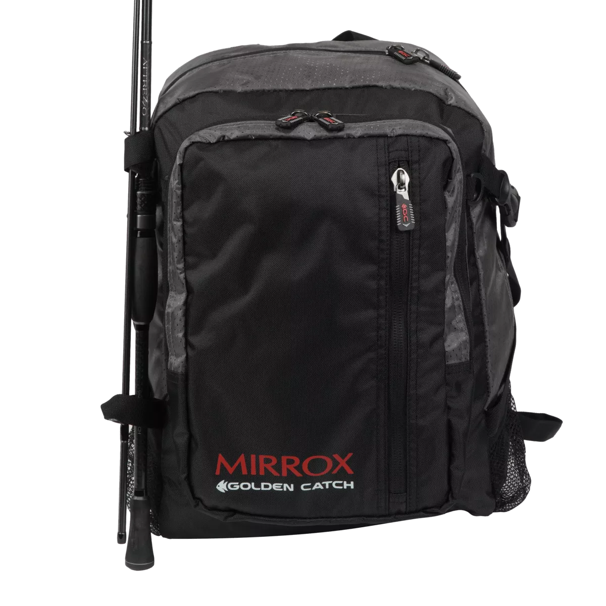 Коли чекає рибалка, що включає коротку подорож або планується активне піше переміщення – вашим незамінним супутником буде рюкзак Golden Catch Mirrox Backpack. Загальний об'єм рюкзака в 30 літрів дозволяє взяти з собою все необхідне навіть із запасом, а бічні обважування з утяжками і замком-фастексом дозволять закріпити об'ємні речі. Усередині основного відділення розташовується відсік для ноутбука, а його мимовільне випадання з відкритого рюкзака запобіжить замок на липучці. Так само з боку спинки рюкзака розташовується кишеня на змійці, яка займає площу всієї спинки рюкзака. Друге відділення – це містка кишеня по всій площі лицьової сторони рюкзака, куди поміщаються навіть досить великі коробки з приманками або інші речі. Вологостійкість рюкзака збереже ваші речі в сухості при незначному дощі. Ергономічні плечові лямки забезпечують комфорт при тривалому носінні, а можливість скріпити їх між собою застібкою-фастексом особливо актуальна на складних маршрутах.