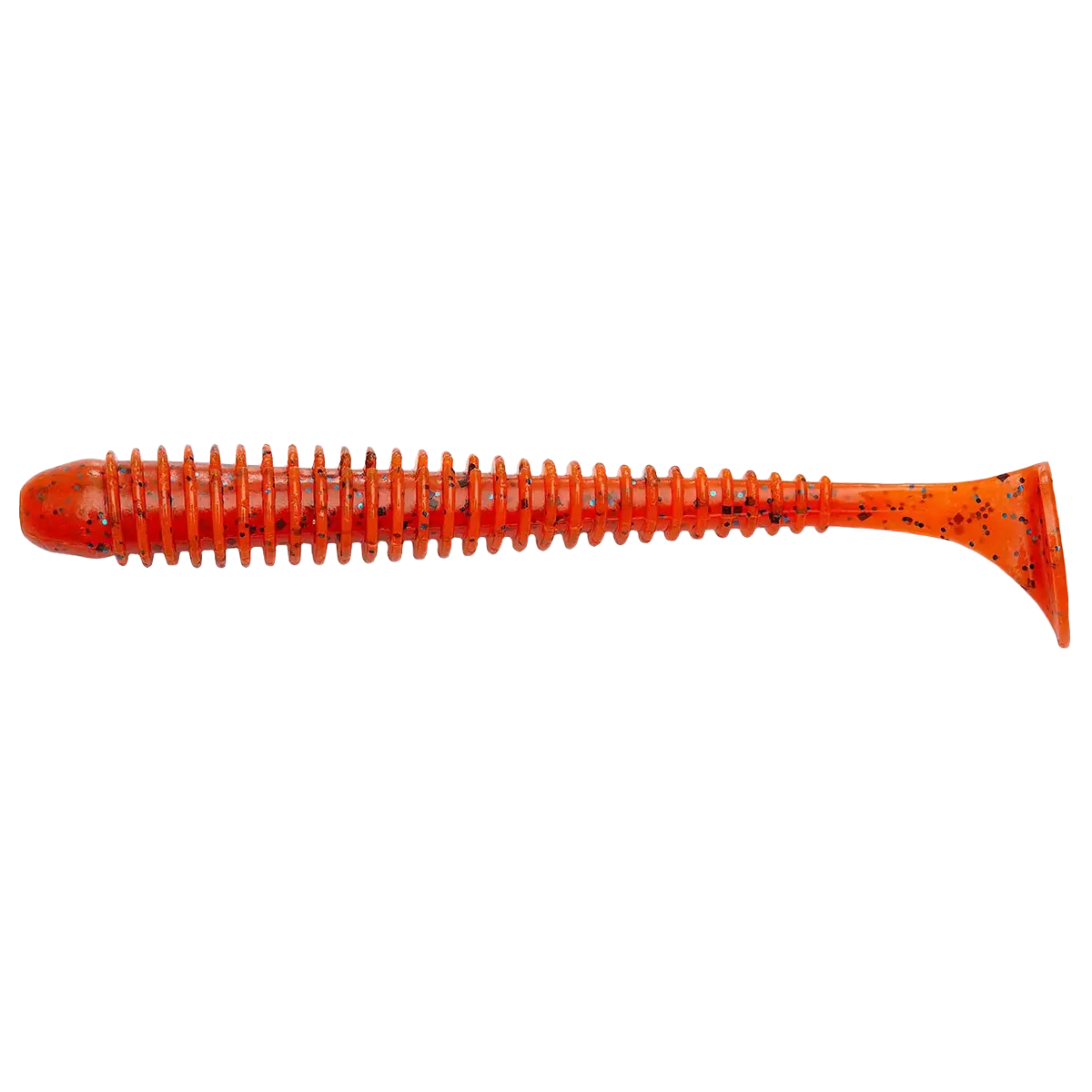 П'ята віброхвоста дуже рухлива і включається в гру при самій повільній проводці. Ребристість на тілі приманки створює додаткові збурення у водному середовищі, що привертають хижака з великої відстані.