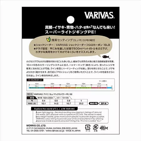 Опис Шнур Varivas Avani SLJ Max Power PE X8 150м Multicolor