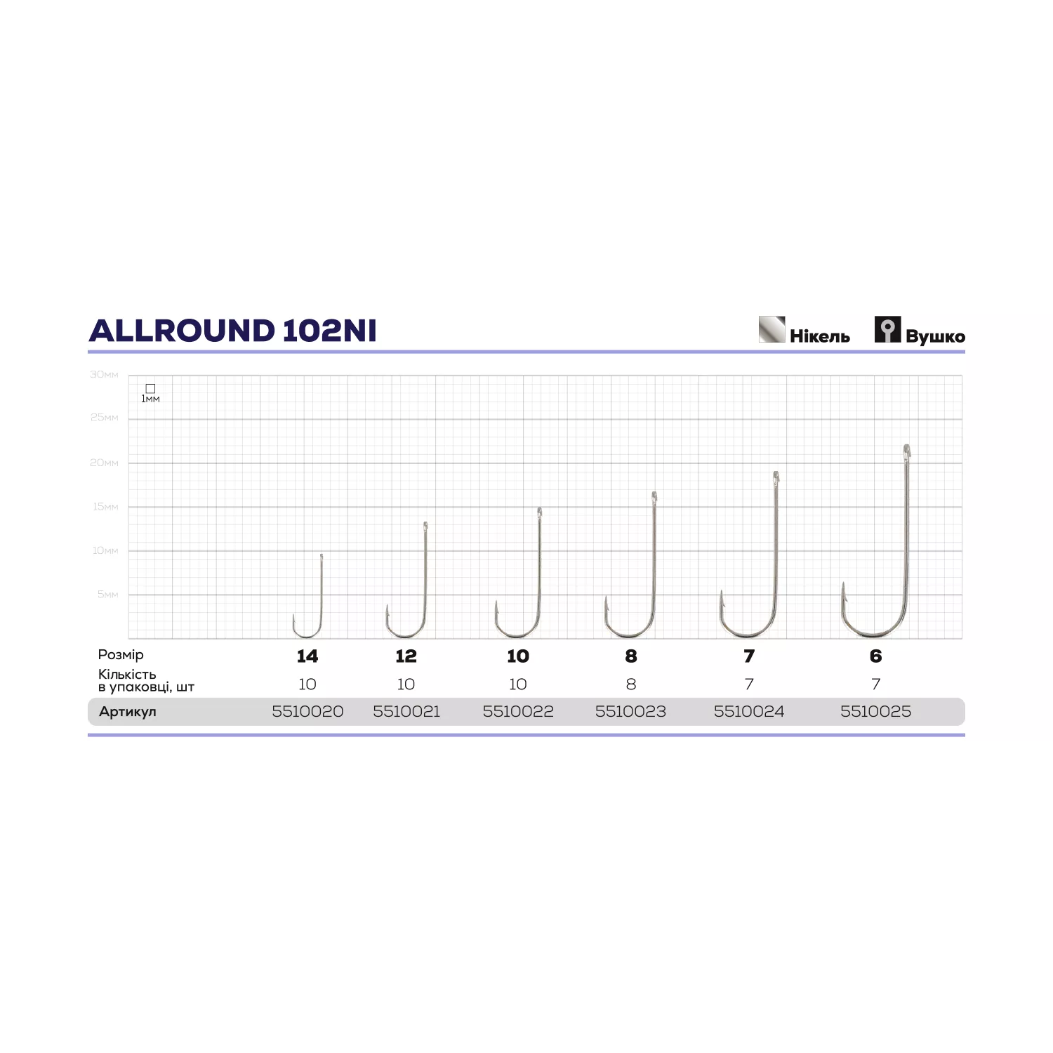 Покриття Nickel запобігає передчасній корозії і дозволяє використовувати гачок в морській воді.