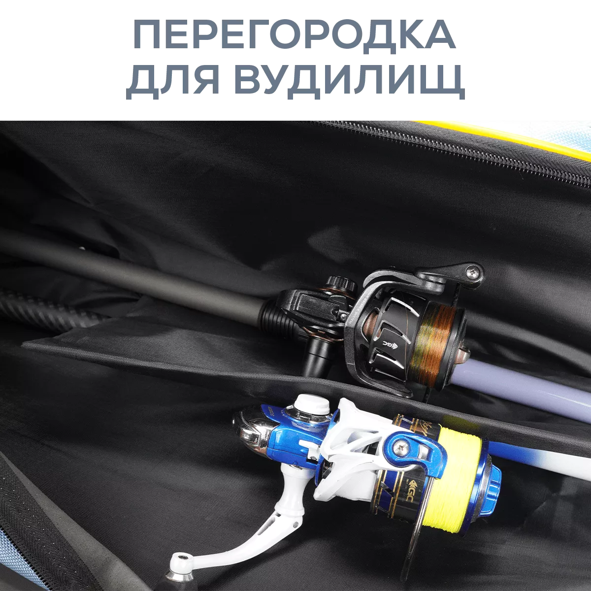 Чохол оснащений якісною двосторонньої змійкою зі зручними хлястиками на замках. Регульований плечовий ремінь і ручка для перенесення сприяють зручності транспортування на значні відстані при піших переходах. Відділ під котушку для зберігання вудилища з котушкою.