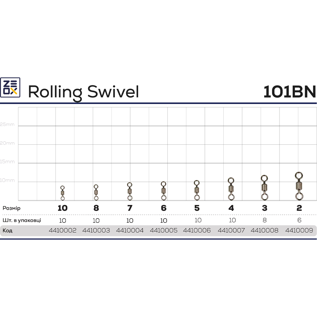 Опис Вертлюг ZEOX Rolling Swivel 101BN