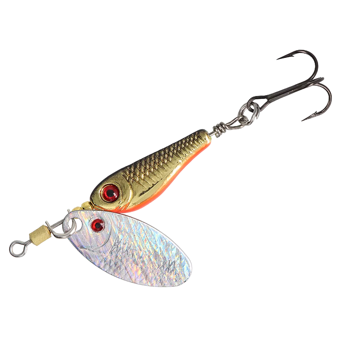 Приманка оснащен крючком французской компании VMC, оптимально подобранного размера. Также вертушка имеет интегрированный вертлюг, который противостоит перекручиванию лески.
