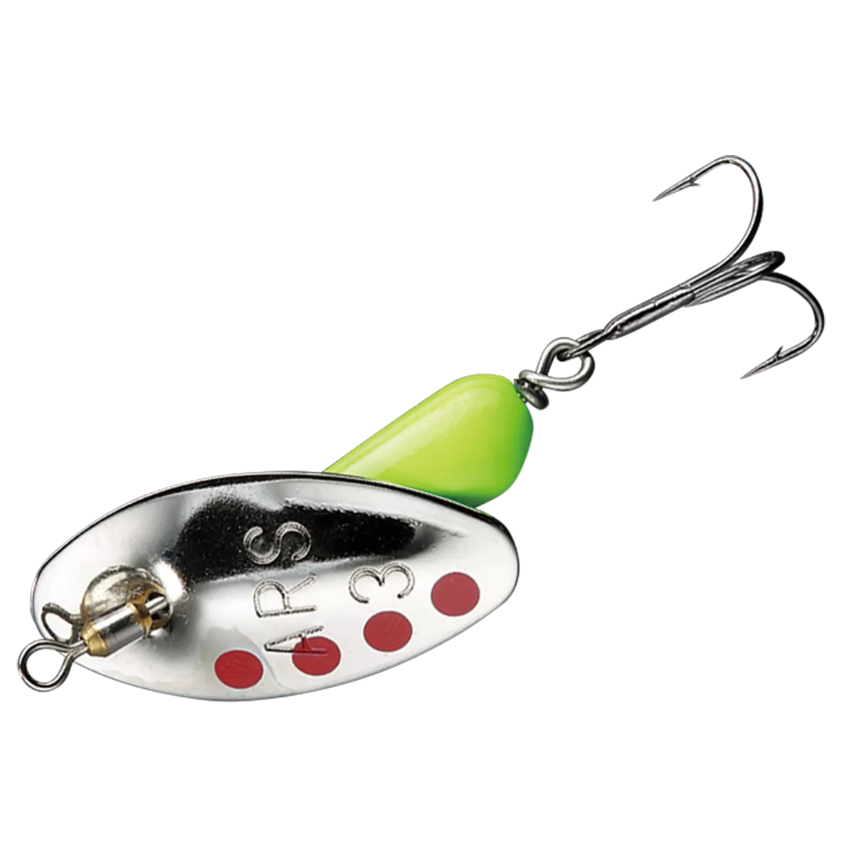 Благодаря вольфрамовому сердченику со смещенным в нижнюю часть центром тяжести вертушка обладает хорошими полетными характеристиками. Заброс получается достаточно дальним и, что очень важно в условиях диких форелевых речек, стабильно точным! Ось приманки оснащена вертлюгом на подшипнике, который препятствует закручиванию лески.