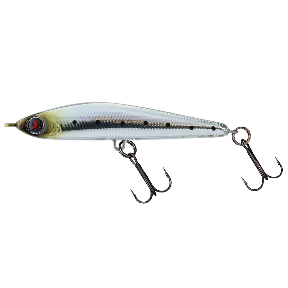 Тонущий воблер типа стик. Особенностью данного типа приманок является отсутствие носовой лопатки, благодаря чему они лучше летят и имеют другую игру.