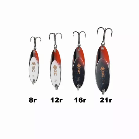 Блёсны GC изготовлены из латуни. Для достижения правильной игры, подобраны уникальные для каждой модели форма и вес.