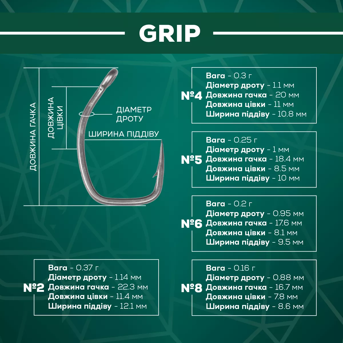 Характеристики Крючок GC G.Carp Grip TF