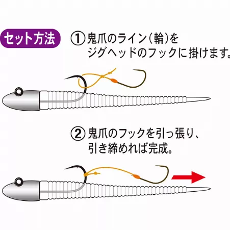 Имеет петлю, которую остаётся только затянуть на основном крючке.