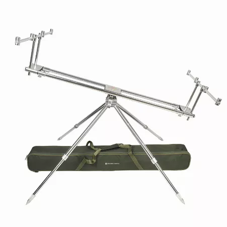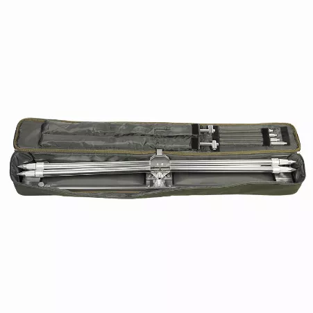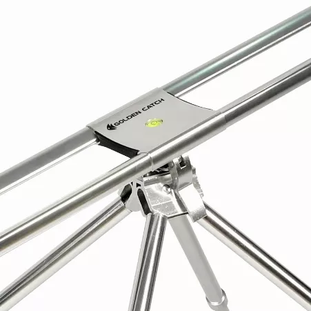 Род-под GC наряду с демократичной ценой обладает великолепными рабочими характеристиками и подойдет как начинающим карпятникам так и профессионалам своего дела. Длина центральной части регулируется в пределах 75-115 сантиметров что предполагает комфортную работу с удилищами разной длины. Ширина род-пода составляет 45 сантиметров благодаря чему обеспечивается надежная фиксация до четырех удилищ одновременно. Угол наклона основной части имеет регулировку в пределах +_ 54 градусов и позволяет задать нужный угол атаки лески относительно водной поверхности в зависимости от конкретных условий ловли. Регулировка качели достаточно легкая поднимать и опускать удилища можно при помощи движения одной руки что очень важно при вываживании крупной рыбы. Также род-под GC оснащен встроенным уровнем показывающим угол расположения удилищ относительно горизонтали. Благодаря четырем телескопическим ножкам обеспечивается точная регулировка род-пода GC по высоте в диапазоне 65-90 сантиметров. Кроме того независимая регулировка ног допускает установку практически на любой поверхности – будь то каменистый склон бетонная дамба либо песчаный пляж. Поставляется род-под GC в удобном полужестком чехле для транспортировки и в сложенном состоянии имеет размеры 108х13х13 см. а благодаря применению алюминиевого сплава он имеет достаточно малый вес – всего четыре килограмма.
