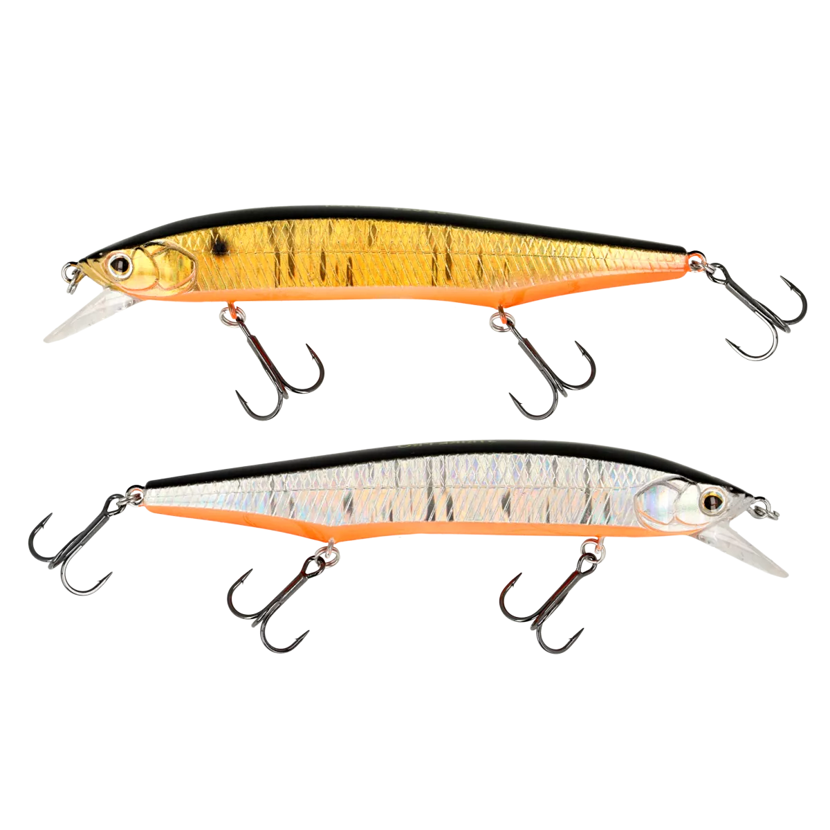 Воблер Intriger (EG-194B, EG-194A) доступен в размерах 105 и 120 мм. Старшая модель оснащена тремя тройными крючками №4 для лучшей реализации поклёвок. На 105-й модели установлено два тройника №6.