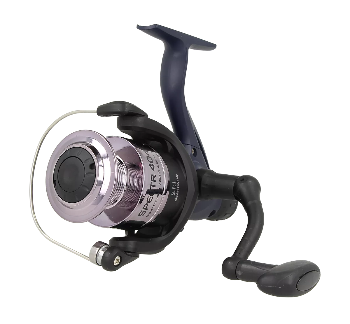 Модель отличается лёгкой конструкцией и тёмно-синим дизайном. Катушка комплектуется одной пластиковой шпулей.